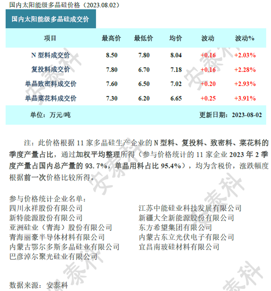 订单成交数量增加多晶硅价格延续微涨走势