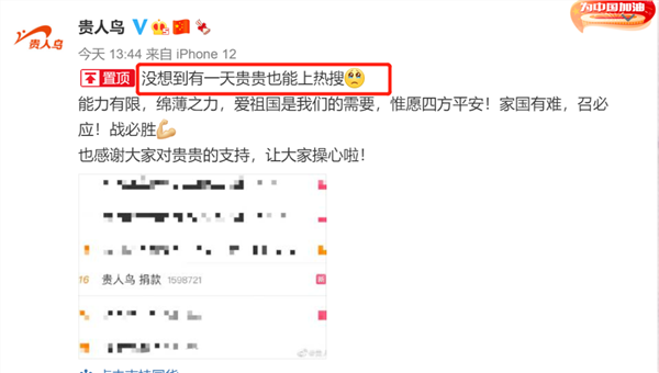 贵人鸟“悄悄”捐款上热搜