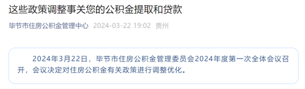 3月22日,据“毕节市住房公积金管理中心”公众号消息,毕节市住房公积金管理委员会决定对住房公积金有关政策进行调整优化。