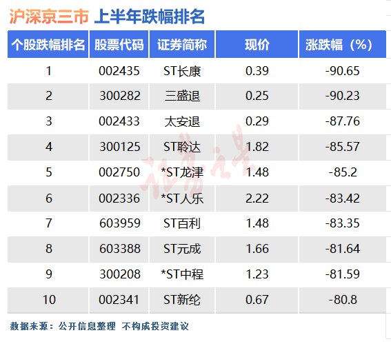值得注意的是,ST股密集出现在上半年的跌幅榜单上,显示出这类个股的风险正在集中释放。投资者需要给予高度重视,并在后续的投资中保持高度警惕,以避免踏入类似的“雷区”。