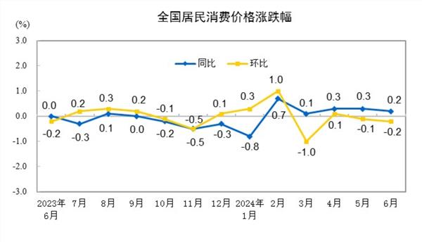 (原标题:2024年6月份居民消费价格同比上涨0.2%)