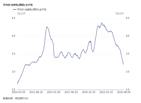 据证券日报报道,多个地区的奶牛养殖企业均面临着原奶价格下跌、原奶动销不畅的现状。据国家奶牛产业技术体系首席科学家李胜利透露,2024年以来,牛奶原奶过剩的情况较2023年更为严重,导致其收购价持续下跌,使得奶价和成本出现了国家奶牛体系有记录以来的首次倒挂。多位业内分析师表示,乳品消费市场疲弱、原奶供应过剩、供需平衡被打破是导致近段时间原奶价格持续下行的主要原因。另有分析师认为,压缩产能、调整奶源供需配比、提振乳制品消费或为破局之道。