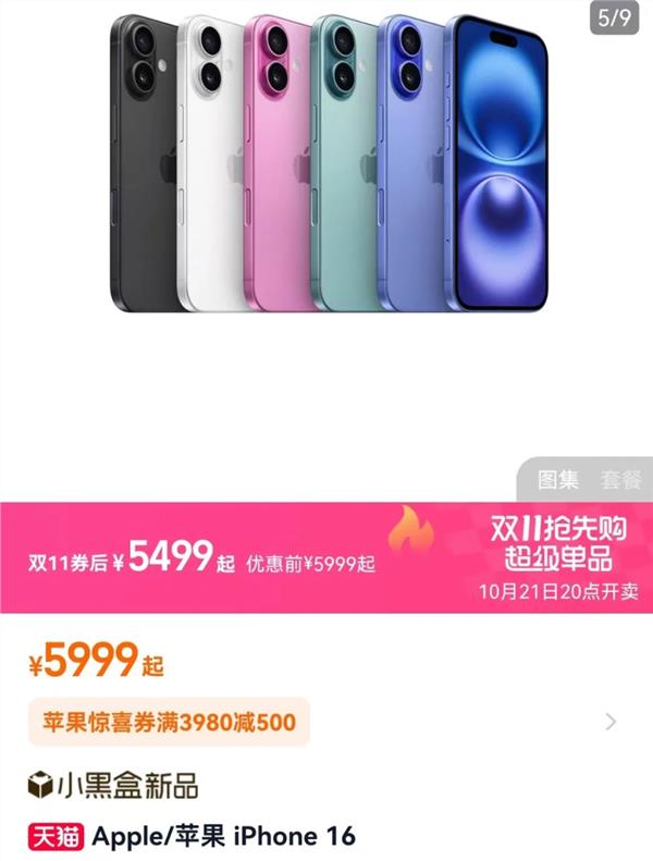 苹果官方旗舰店10月20日公布天猫双11优惠,10月21日晚间现货开卖,该店铺iPhone 16系列最高优惠1600元。iPhone 16、iPhone 16 Plus、iPhone 16 Pro和iPhone 16 Pro Max原价分别为5999元起、6999元起、7999元起、9999元起,双11券后价则分别为5499元起、6499元起、7499元起和9499元起,即该系列每款手机均优惠500元。此外,苹果手机以旧换新至高补贴1100元,叠加后购买iPhone 16系列手机至高优惠1600元。