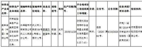 此外,河南省市场监督管理局网站于6月10日发布的通告(2020年第50号)显示,近期,河南省市场监督管理局组织抽检了粮食加工品、酒类、调味品、淀粉及淀粉制品、速冻食品、食用农产品、糕点、方便食品、炒货食品及坚果制品、餐饮食品10大类食品1560批次样品,抽样检验项目合格样品1529批次,不合格样品31批次。