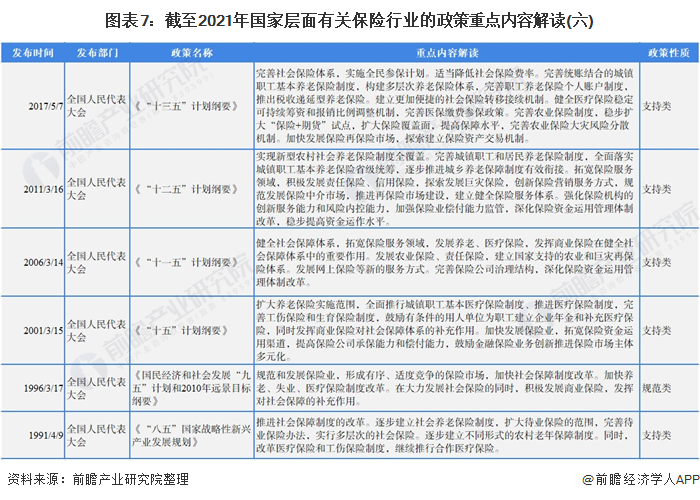 自1991年以来,国务院、国家发改委、保监会等多部门都陆续印发了支持、规范保险行业的发展政策,内容涉及保险公司发展经营、保险行业政策、法律法规、保险财务、偿付能力、资金运用等内容: